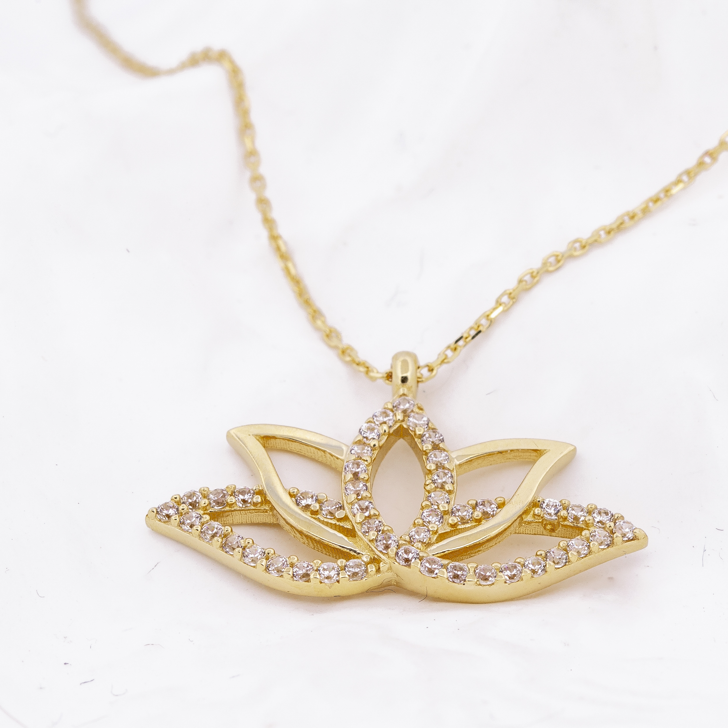 Der Lotus steht seit jeher für Reinheit, Harmonie und Neubeginn. Die sanft geschwungene Form des Anhängers und das feine Funkeln verleihen der Kette eine feminine Ausstrahlung, die sowohl im Alltag als auch zu besonderen Anlässen begeistert. Die zarte Goldkette schmiegt sich elegant an den Hals und sorgt für ein angenehmes Tragegefühl.
