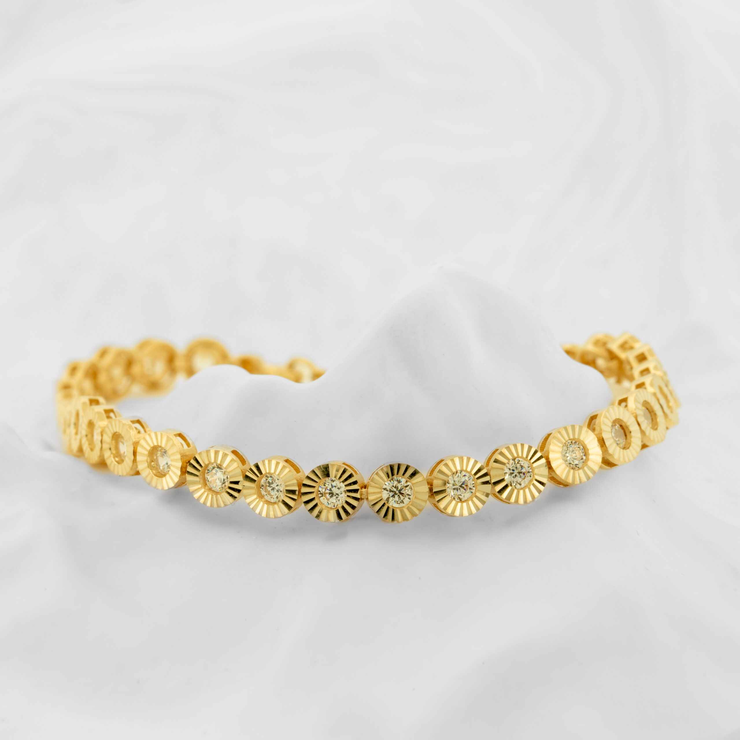 Die Rüya Ohrstecker verkörpern zeitlose Eleganz in ihrer feinsten Form. Gefertigt aus hochwertigem 585er Gelbgold, begeistern sie durch ihr schlichtes und dennoch raffiniertes Design. Die runde Form wird durch eine kunstvoll facettierte Oberfläche veredelt, die das Licht aus verschiedenen Winkeln einfängt und für ein dezentes, funkelndes Spiel sorgt. Diese feinen Details verleihen den Ohrsteckern eine besondere Lebendigkeit, ohne dabei aufdringlich zu wirken. Dank ihres minimalistischen Stils lassen sich die Rüya Ohrstecker mühelos in jeden Look integrieren – ob im Alltag, im Büro oder zu besonderen Anlässen. Ihr angenehmes Tragegefühl und die hochwertige Verarbeitung machen sie zu einem langlebigen Begleiter. Ein elegantes Schmuckstück für alle, die subtile Schönheit und klassische Formen schätzen.